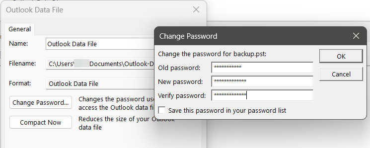 When you link email accounts to Outlook, the client stores various types of information—such as calendar entries or contacts—as well as copies of sent and received messages locally in so-called Outlook data files (PST or OST files. PST files, in particular, can be password-protected for added security. If you want to take advantage of this feature—or change the current password of an existing PST Outlook data file—follow these steps: