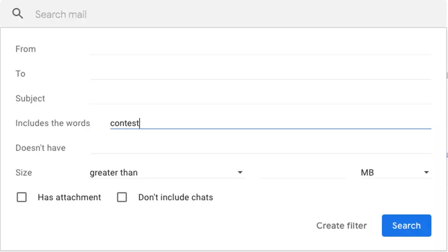- ‘Does not contain’ excludes emails that do not use certain terms.