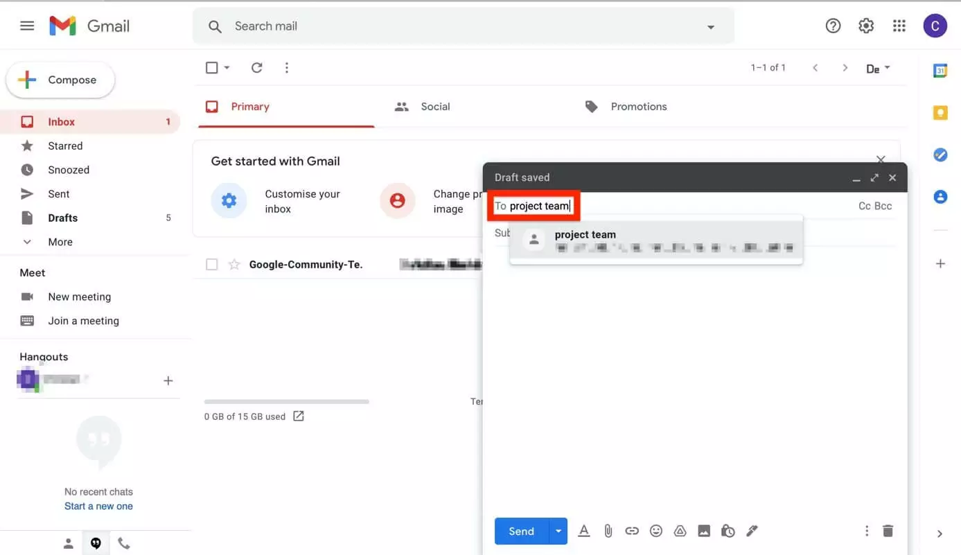 - If you now want to send a new message to this Gmail list, enter the name of the group in the ‘Recipient’ field.