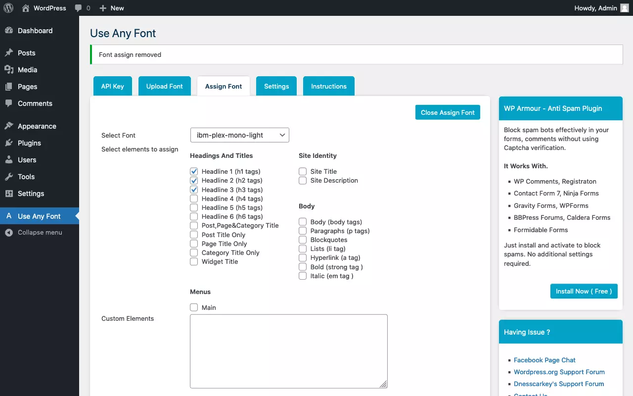 | Using webfont plugin | Simple; operate from WordPress dashboard; works with fonts that are not publicly hosted. | Requires installation of another plugin; less control compared to manual method and webfont generator. |