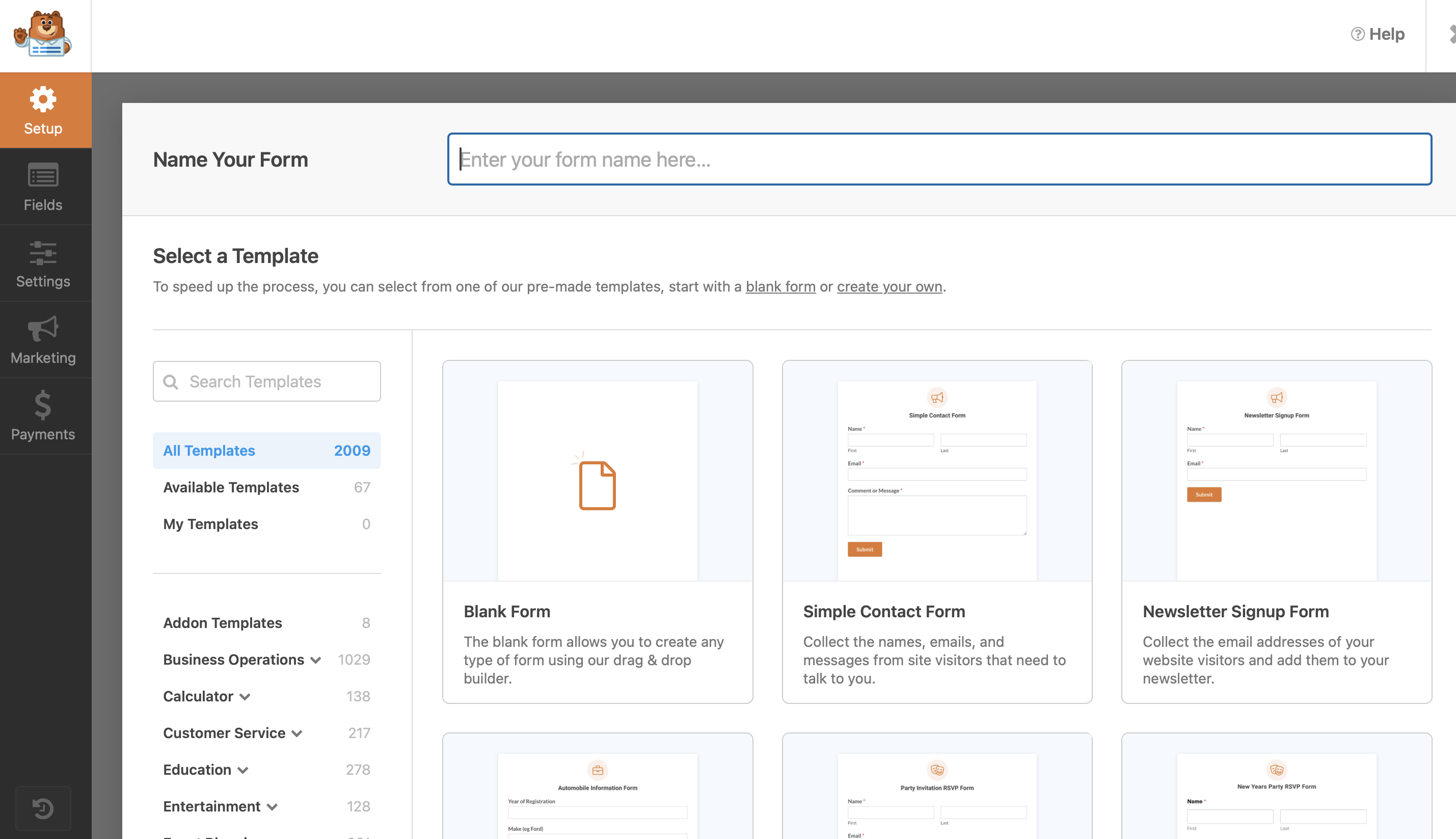 - A good selection of field types already available in the free version, including drop-down menus, date, checkboxes, star rating, and Mailchimp opt-in