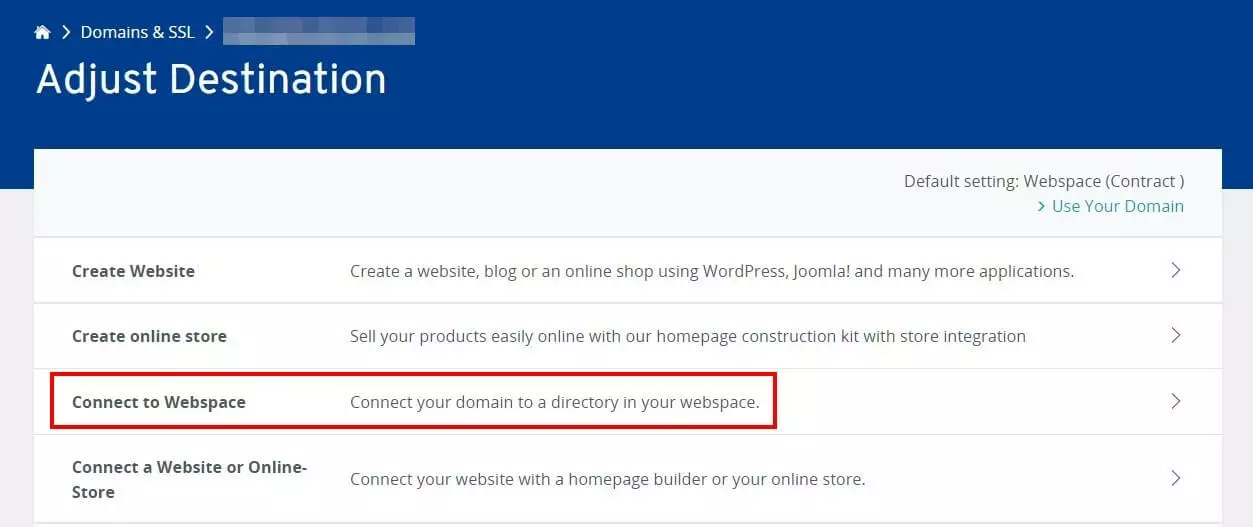 - Choose the 'Connect to webspace' option and confirm this change by clicking 'Save'.