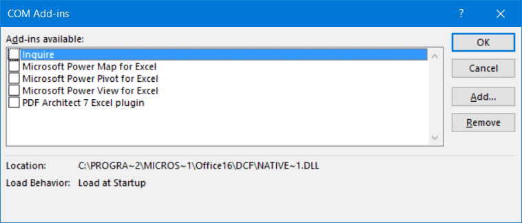 If the problem was caused by an add-in, Excel should now run smoothly. You can also use this method to re-enable add-ins one by one to identify the specific add-in that’s causing the issue. If you really need the add-in, try to install a new version of it. Otherwise, remove it or just leave it inactive until the vendor releases an update.