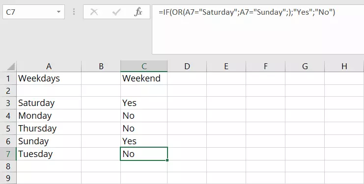 =IF(OR(logical1;logical2);“Yes”;“No”)A practical example of the OR function