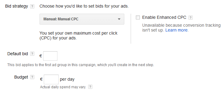 The approaches listed here demonstrate why a blanket bid strategy isn’t possible. Nor is there a universal evaluation method for Google Ads optimisation. If the focus is on click optimisation, then the number of clicks should be set in relation to payment (CPC), but if maximising conversions is the goal then conversions should be the central element. Should you be aiming to maximise profits, then ROI is the best strategy. In order to control the bids manually, don’t forget to select manual bidding when creating the campaign.