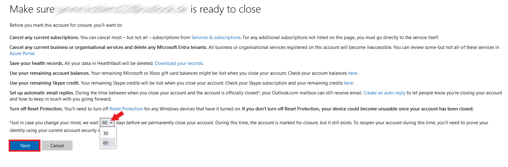 Your Microsoft account will first be deactivated. When requesting deletion, you can choose whether the account should be permanently deleted after 30 or 60 days. This means that if you delete your account, you can still access your data and reactivate the account for 30 or 60 days. To do this, simply log in with your Microsoft login credentials. You will then be asked whether you want to reactivate your account.
