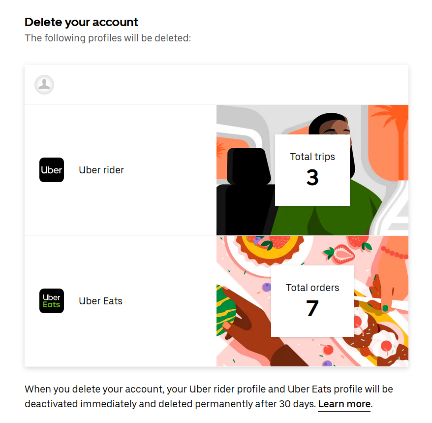 - You will now receive information about what happens when you delete your Uber account. Read this text carefully. If you understand everything, confirm this.