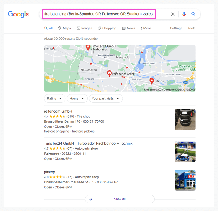 tire balancing (Berlin-Spandau OR Falkensee OR Staaken) -sales- Improve your Google ranking without paying an agency