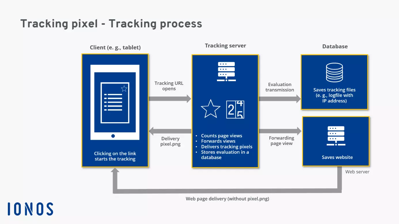 />htmlA tracking pixel is triggered when, for example, an online shop page is accessed via a mouse click and loaded in the browser (e.g., Google Chrome). The browser reads the code snippet for the tracking pixel and requests the tiny image using the stored tracking pixel URL. The addressed server then sends the pixel tag to the client’s browser, counts the page view, and logs the unique IP address of the recipient as well as other visitor information sent during the request procedure in log files. These records are then used for quantitative (statistical) and qualitative analysis in online marketing.