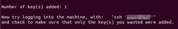 Following on from this, the service will look for the key that’s already been created. When found, you can continue with the process by entering the password to log in to the target system. The setup will end, and you will get the following output if the public key can be successfully added.