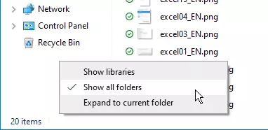 Right-click in the empty area below the icons in the navigation pane and select ‘Show all folders’. The Recycle Bin and the Control Panel will then appear in the navigation pane of the File Explorer.