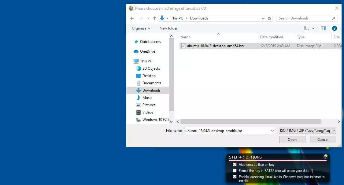 - In Step 4, you can continue with the pre-selected options. If your USB stick is not formatted as FAT32, you will need to tick the appropriate box. However, most USB sticks ship with the FAT32 file system.
