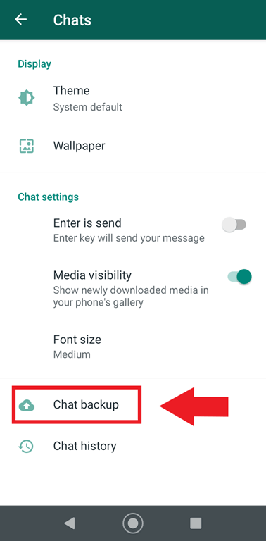 Step 4: In ‘Chats’ go to ‘Chat backup’ at the bottom of the page.
