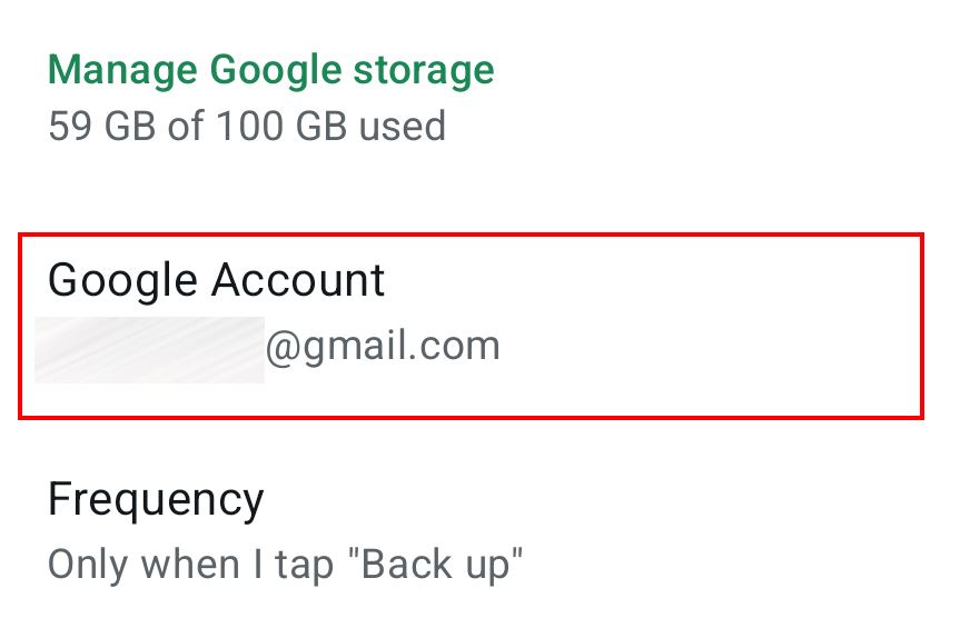 Step 6: Under ‘Google Account’, also select the Gmail address you want to use for the WhatsApp backup in Google Drive.