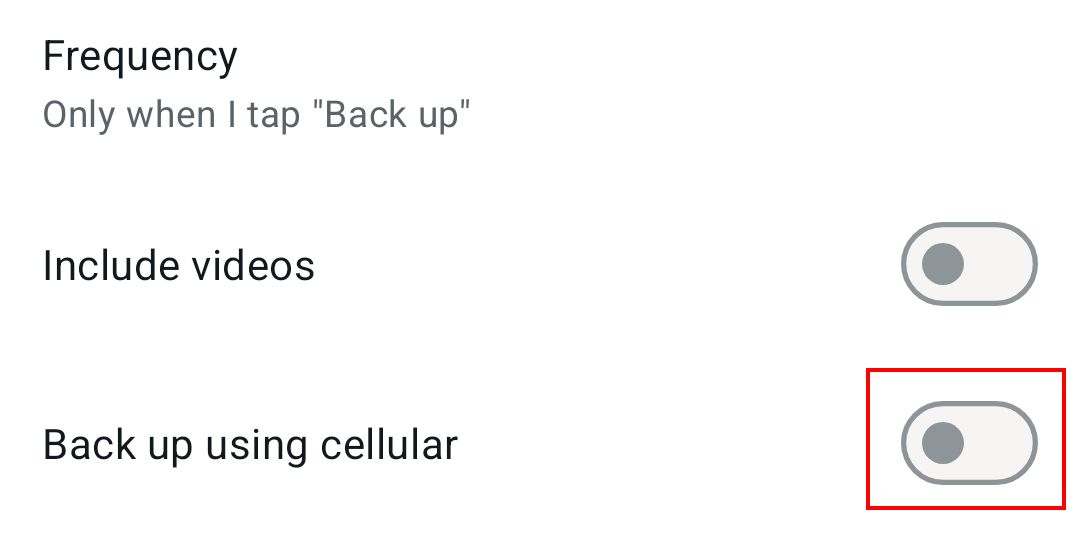 Step 8: Under ‘Back up over’, choose whether you want to save the backup to the cloud using Wi-Fi or a mobile data connection.