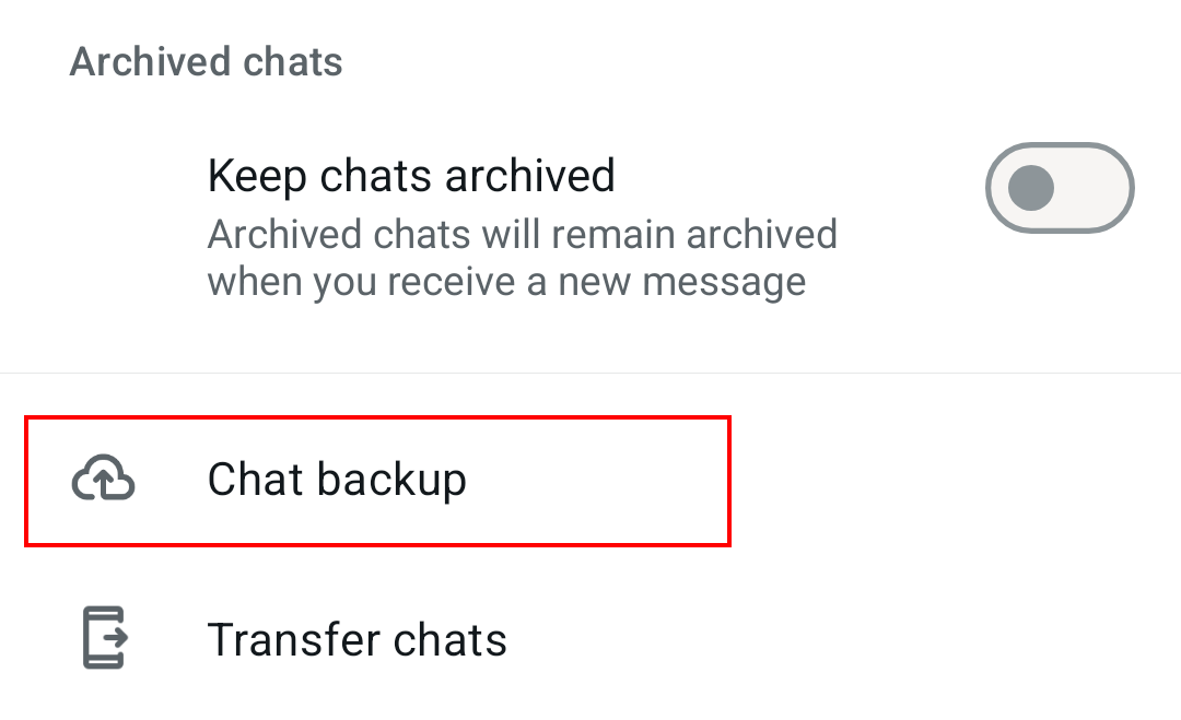 - In Settings, tap on ‘Chats’ and then ‘Chat backup’.