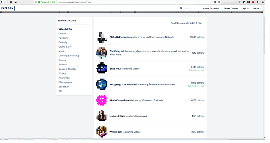 | Patreon is very flexible and open in terms of which projects it hosts ... | ... but this also leads to a number of lower quality projects. |