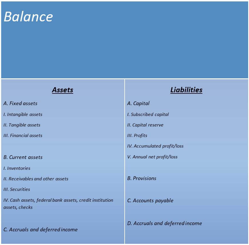 Your balance sheet must also indicate provisions for taxes and fees that are unknown until the end of the calendar year (e.g. a stock company’s allocation of profits).