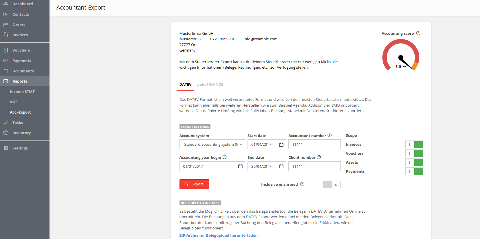 If a tax adviser is to check your documents, they usually need your balance sheet in DATEV format. This is a standard format in tax consultancy, which can be created immediately with an accountancy programme using the correct accountant export function.
