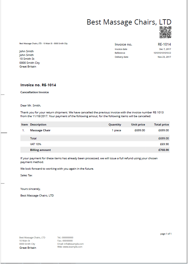 Cancellation invoice: when your invoice has been recorded and dispatched
