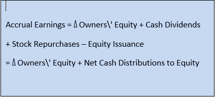 To calculate accrual earnings, the above equation can be rearranged in order to work out the difference between ending owners’ equity and beginning owners’ equity. This is all dependent on the dividends, stock issuances, and stock repurchases.