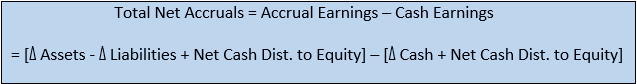 The section started with the basic total net accruals equation and then went on to define accrual earnings and cash earnings. The total net accruals can be substituted into this equation now that these definitions are known: