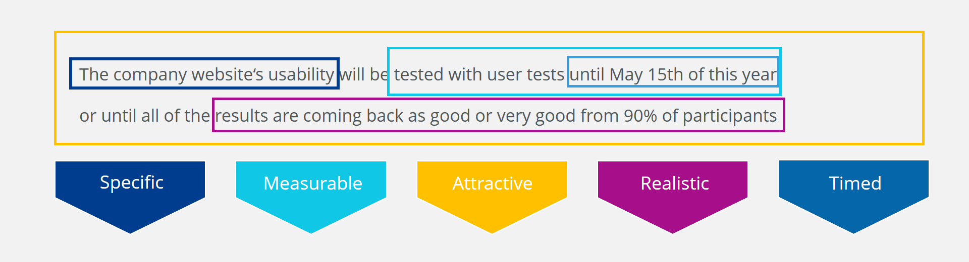 Specific: Objectives should be defined as precisely and specifically as possible. Business goals should be especially clear about the desired outcome and shouldn’t leave any room for interpretation. The goal should always be stated positively. (Positive statement: “We want to be profitable again.” Negative statement: “We want to get out of the red.”)