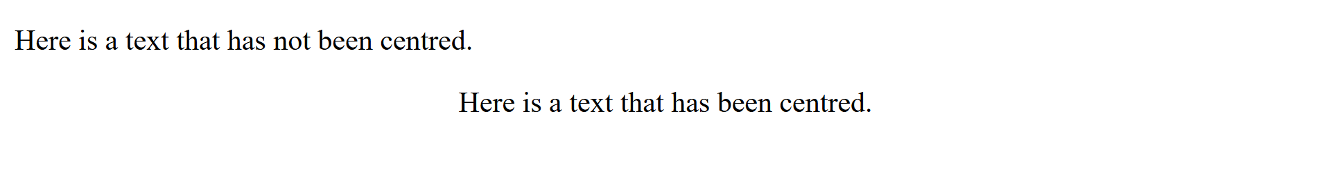 In older versions of the language, the HTML tag <center> was used to centre HTML text. However, since it’s obsolete and no longer supported, it’s best to use the CSS solution instead. For the sake of comparison though, we’ll go over its syntax and show you an example of how the HTML <center> tag was used. First, let’s take a look at the syntax: