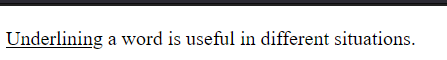 <p><u>Underlining</u> a word is useful in different situations.</p>