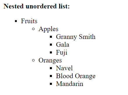 How to create nested unsorted lists in HTML