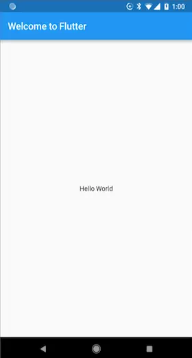 }On a smartphone or in the smartphone simulation, the application displays the 'Welcome to Flutter' title bar from the AppBar() element of the widget. The text 'Hello World' appears in the centre of the screen below the title. This open area of the screen is called the body in Flutter.