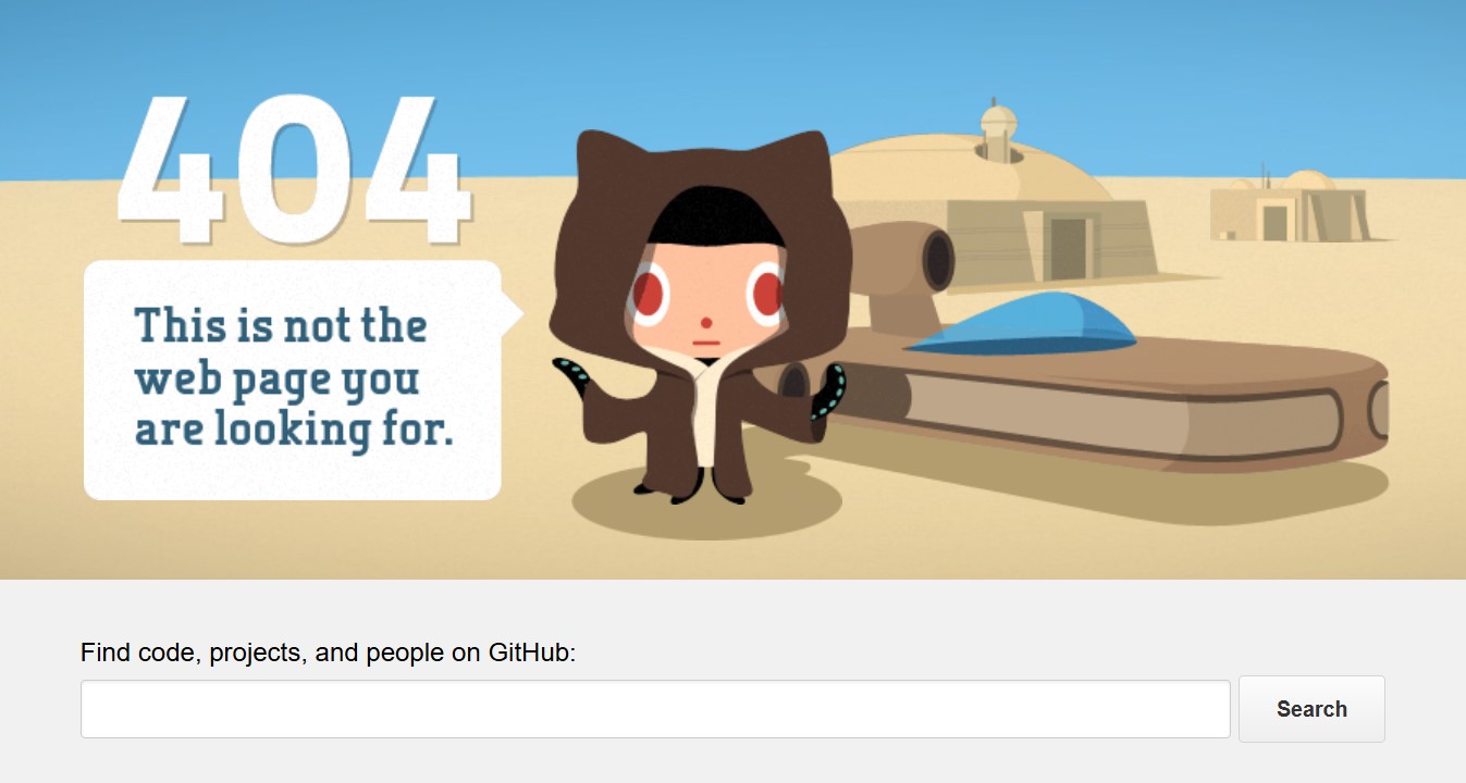 The online service for developers is surely used by many ‘Star Wars’ fans. GitHub’s 404 page references a famous quote from the saga and has likely made some users smile—complete with the GitHub mascot in Jedi Master attire.