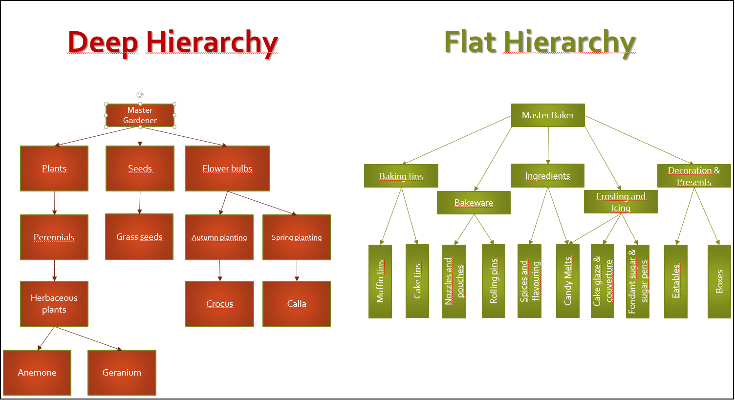 ![Categorisation and hierarchy of two different domains] [Caption: Using the example of two sample online shops, you can see the usual structure of both deep and flat hierarchies. Image: Categorisation and hierarchy of two different domains] [Caption: Using the example of two sample online shops, you can see the usual structure of both deep and flat hierarchies.](https://www.ionos.co.uk/digitalguide/fileadmin/_processed_/9/2/csm_EN-Informationsarchitektur_43aa395c79.webp)