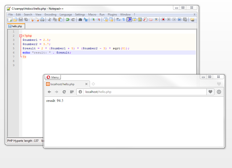 Once you’ve set up your local web server (for example, using XAMPP), it’s a good idea to test that PHP has been installed correctly and is ready to run scripts. A script is a program that’s not compiled into binary code. Instead, they’re executed by an interpreter. Open your preferred text editor and apply the following PHP script: