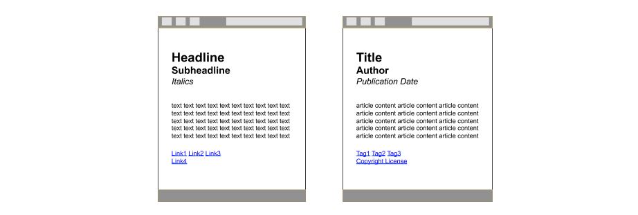 Data structures are the bones of every website and an integral part of HTML coding since tags are used to assign various settings and features to text segments. Among other things, such adjustments allow web developers to define paragraphs, titles, lists, hyperlinks, graphics, tables, videos as well as put fonts in bold lettering or italics. Programmes that read out the code receive detailed information on the structure of HTML documents as well as their depictions as defined by the tagged elements. The content supplied by these tags isn’t captured when the code is automatically read out. As seen in the example below from a news article, the left depiction shows which information is registered by a programme, while the right one displays how a human reader would interpret the text: