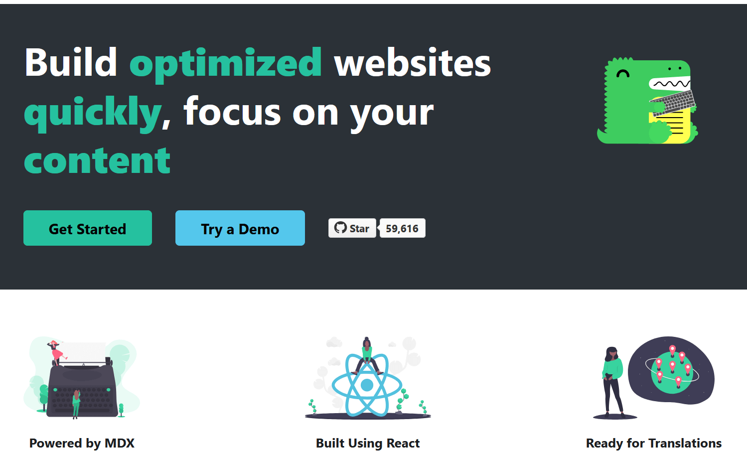 | Docusaurus | 59k | JavaScript | React, Markdown |