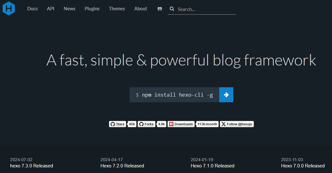 Hexo advertises itself as a fast, simple, and powerful blog framework. The focus is on generating blogs and other sites whose content can be maintained as a collection of markdown files. This places Hexo in the class of Jekyll-like static site generators. By using plugins, a variety of additional template languages can be utilised. To quickly set up a design, you can choose one of the pre-made themes.