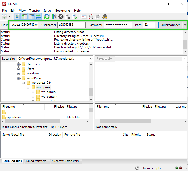 Entering Your Access Details in FileZilla